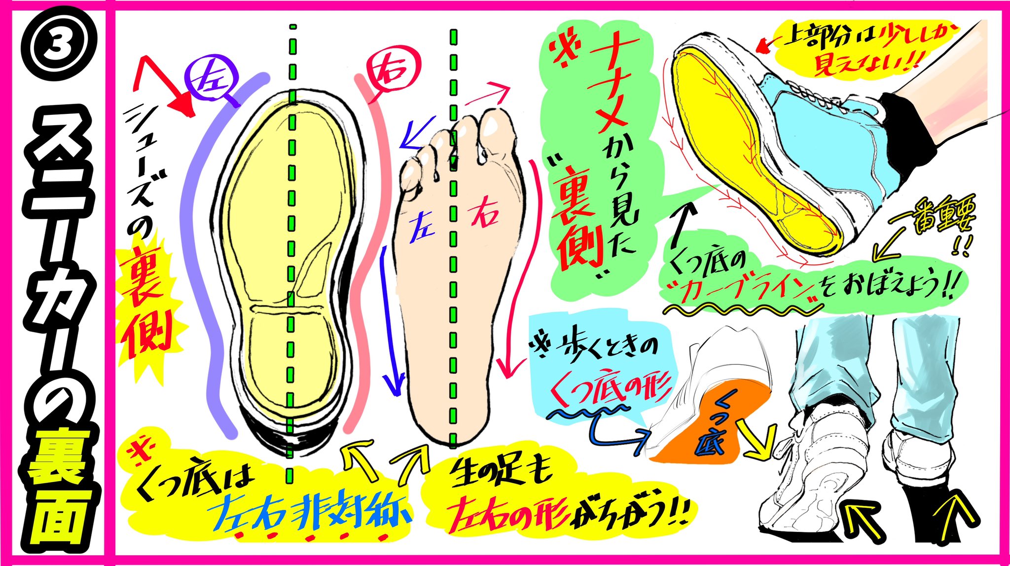 自然な足の描き方 靴の描き方 ローファー ヒール ブーツ スニーカー