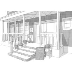 背景線画 カフェ2外観 漫画背景素材 ココ Booth