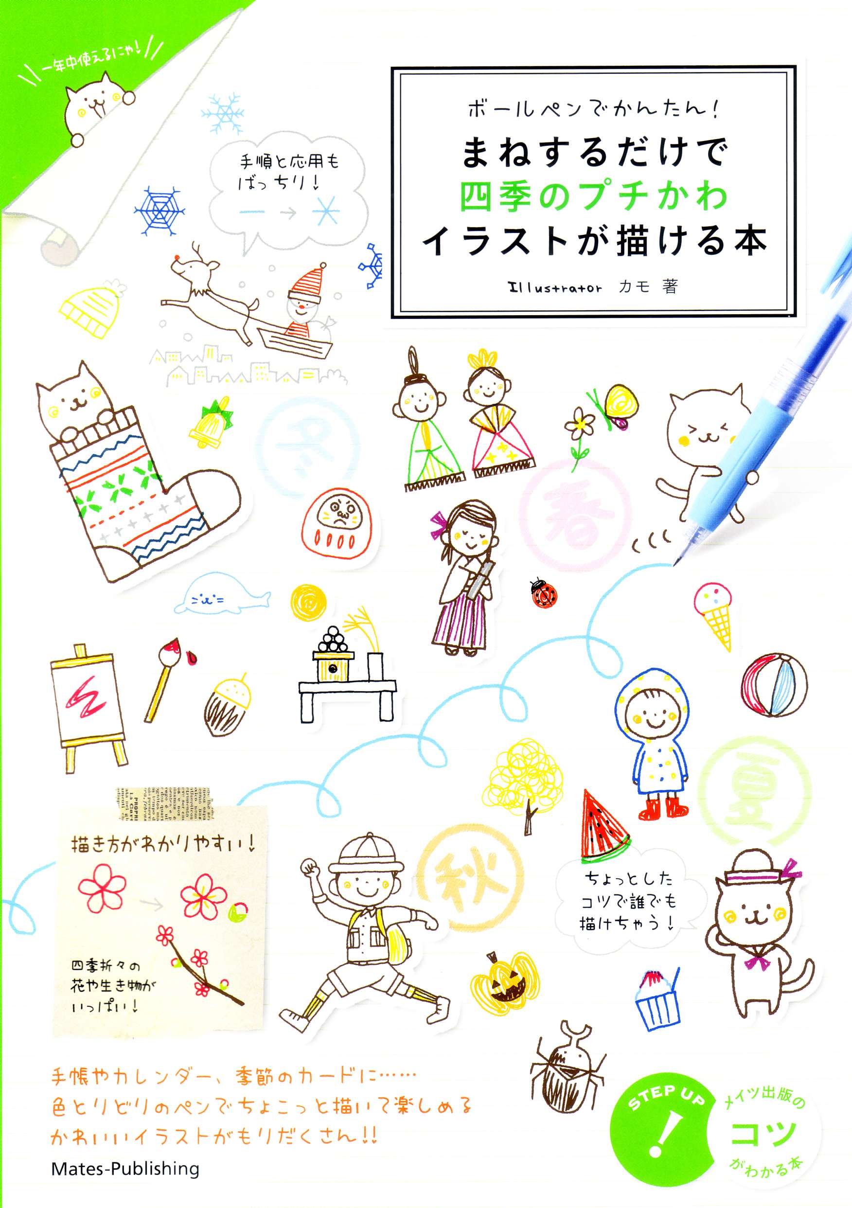 メイツ出版株式会社 ボールペンでかんたん まねするだけで 四季のプチかわイラストが描ける本 ボールペン イラスト 落書きの絵 かわいい図面